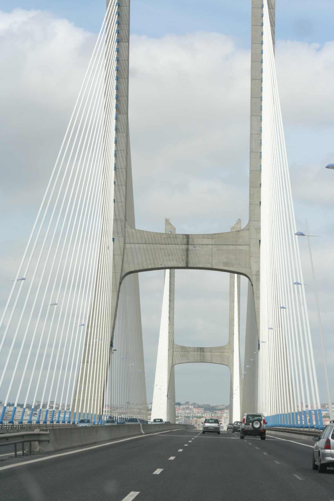 Alugamos um carro e partimos de Lisboa pela ponte Vasco da Gama morrendo de sono.