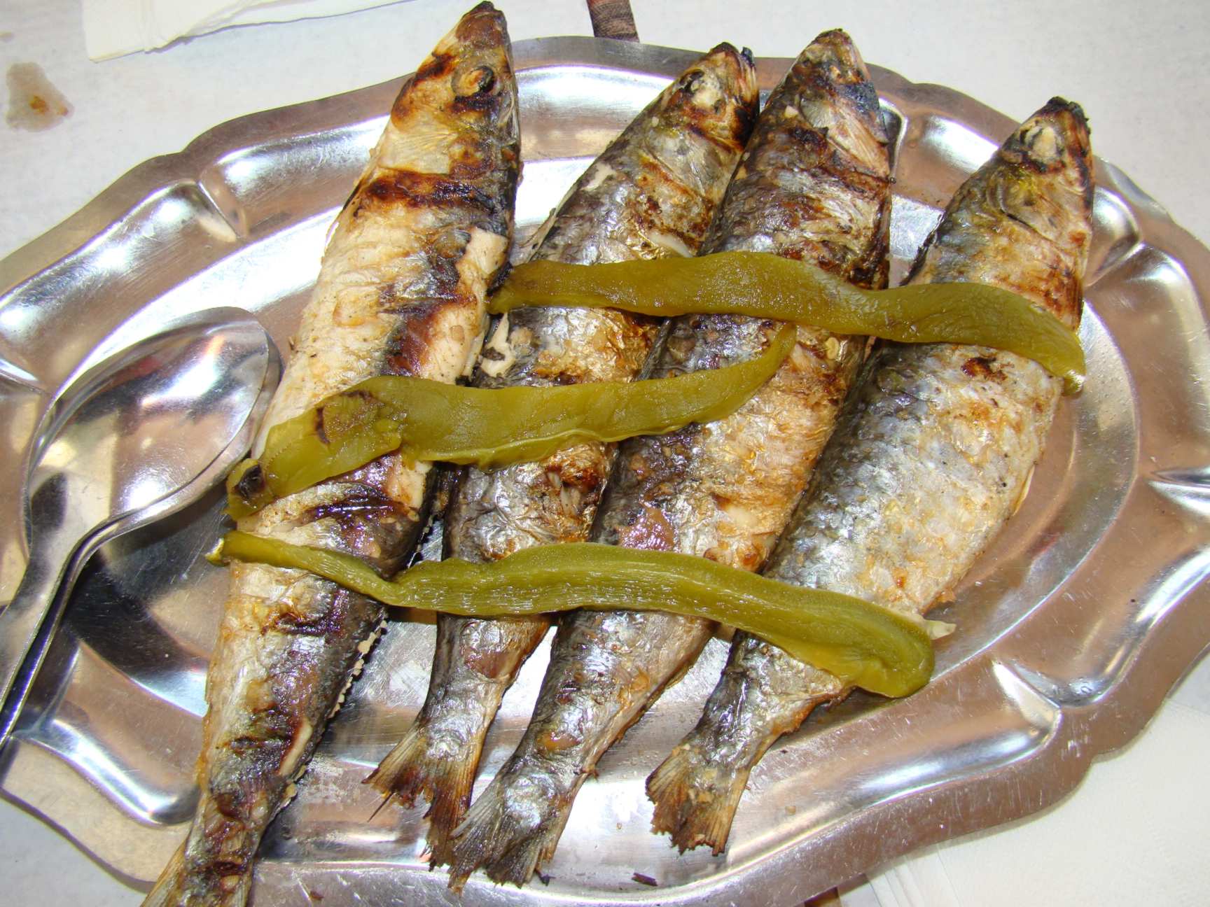 Não dá pra falar na culinária portuguesa sem citar a sardinha e o bacalhau. Peixes emblemáticos desse lindo país. Vir aqui e não comer nenhum destes dois é crime inafiançável, mesmo para quem não goste. A sardinha frita ou na brasa é prato indispensável na cozinha dos portugueses... tivemos sorte de comê-la bem gordinha num restaurante em Nazaré, norte de Portugal,