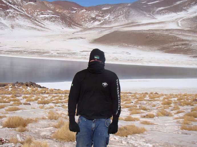 Fiquei de camiseta todo travado de frio, em cima da neve, com aquele vento extremo. Um lugar maravilhoso sem poder filmá-lo, me sentindo um picolé ! Pelo menos tiramos algumas fotos.
