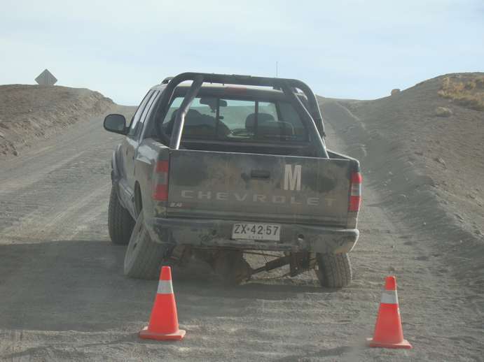 No caminho, para atrasar ainda mais, tomamos uma dura dos Carabineiros no meio do deserto. Ali é fronteira com a Bolívia e os chilenos levantam a guarda.