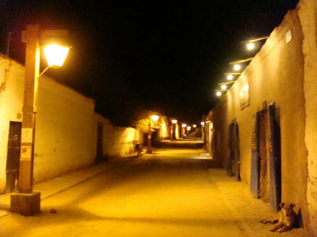 Depois da burocracia na aduana chilena, procuramos um camping em San Pedro do Atacama. Encontramos o Los Perales, perto da rua Caracoles que é na rua central onde rola a night e onde estão os melhores restaurantes da cidade.