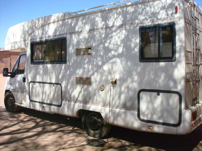 No camping, jogamos a ancora perto de um motorhome da França. Nele tinha um mapa mundi com os lugares já visitados. Era uma coisa impressionante. O cara tinha dado a volta ao mundo quase 2 vezes e estava viajando desde 1996! 250.000 km percorridos! Eu iria conhecer esse camarada no dia seguinte.