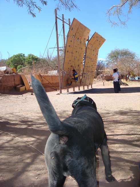 Na volta pro camping ficamos conversando com uns chilenos locais alpinistas. Caras maneiros e conversadores. Os mesmos que escalam uma parede artificial de alpinismo, que aqui chamam de Andinismo. Esta parede ficava ao lado do Farofamóvel no camping.