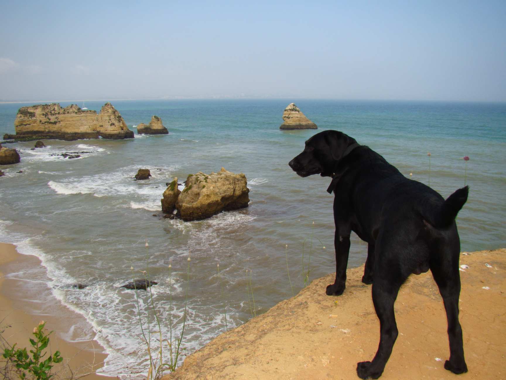 Português adora cachorro. Quase todo mundo tem pelo menos um. Eles andam soltos pelas ruas... nas praias e tivemos sorte por termos escolhido esse país, extremamente pet-friendly, para esperarmos o Farofamóvel com o nosso Fedido.