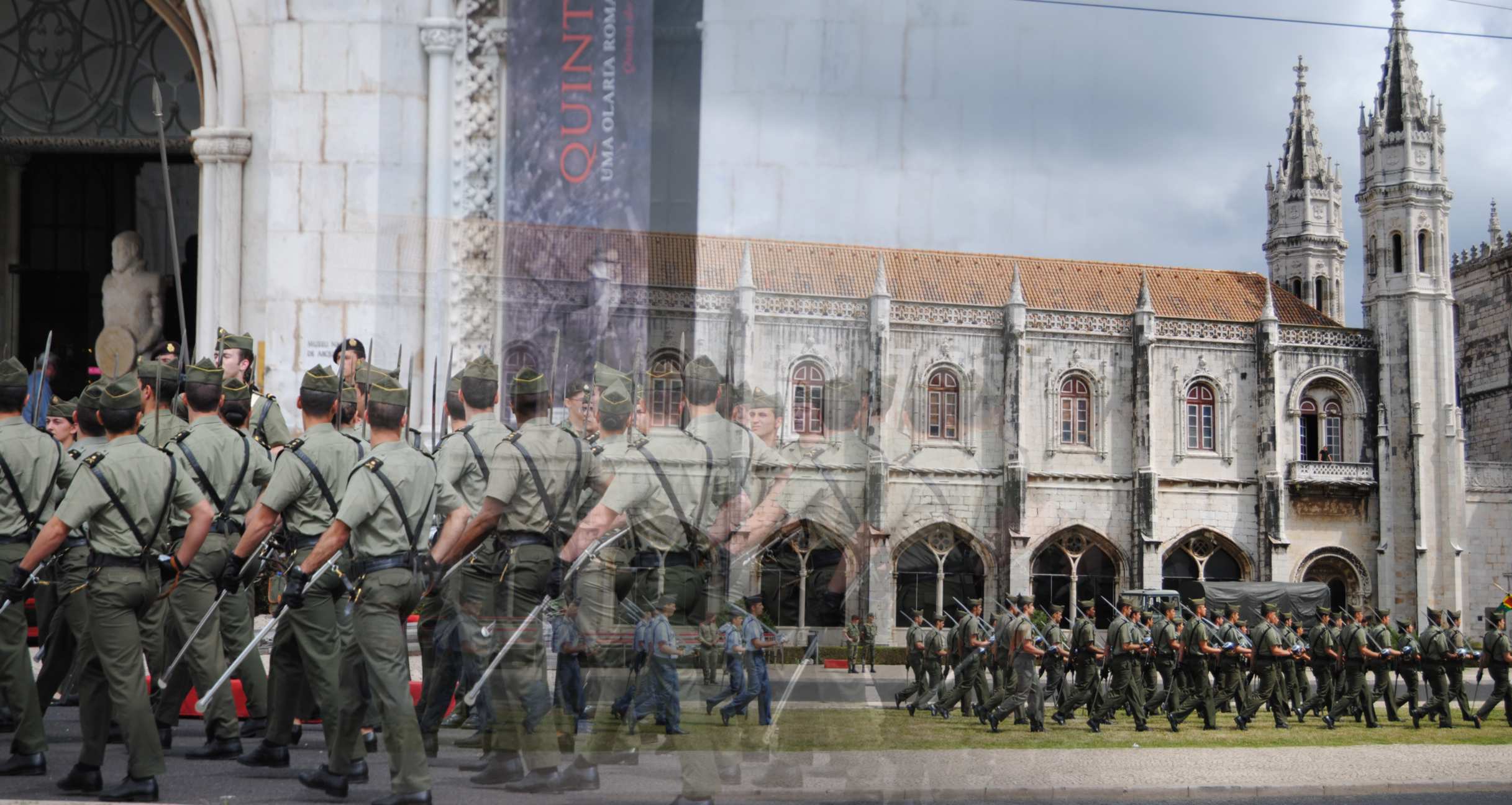 Fomos no Mosteiro dos Jerônimos e estava tendo um desfile do exército bem bacana.