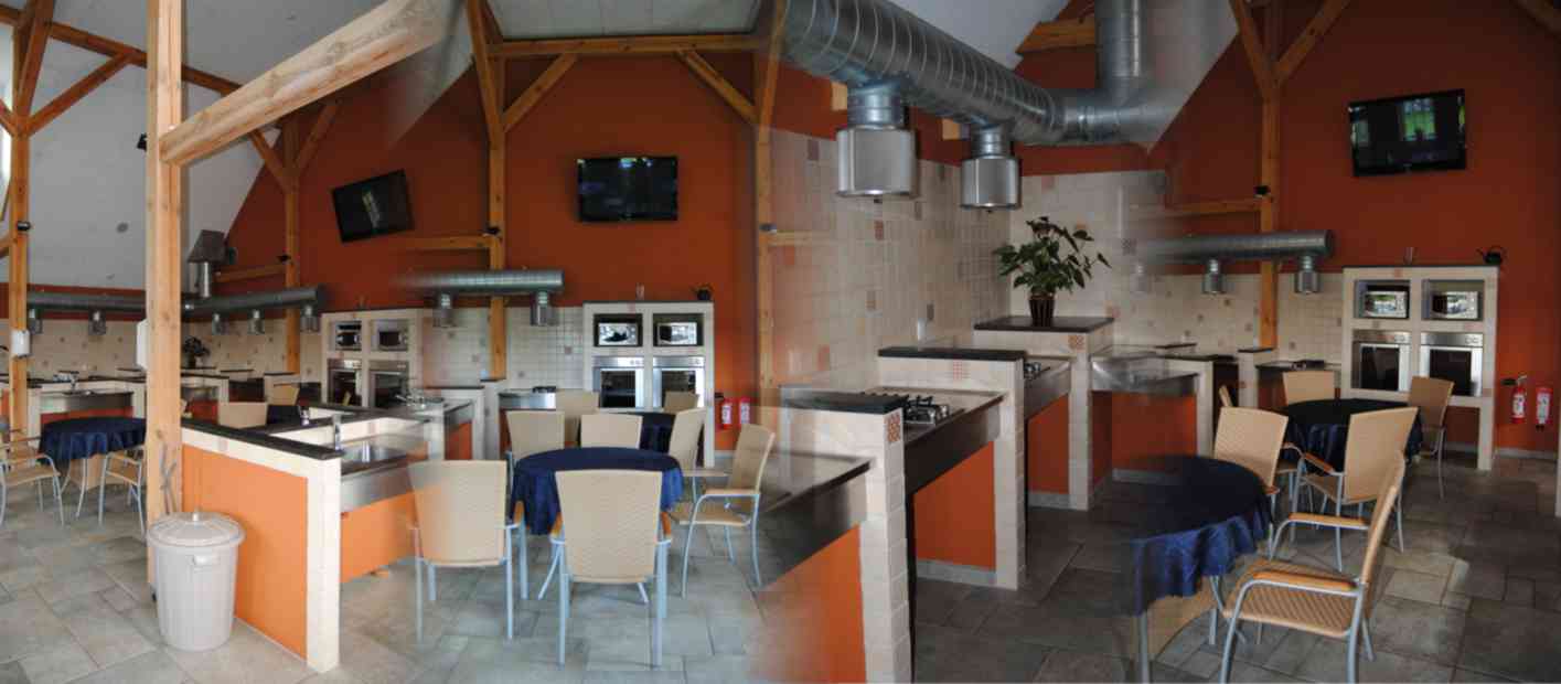 E por falar em acampamento, o camping onde ficamos tinha uma infra-estrutura incrível!!! Neste sentido, não vimos nada igual em toda a viagem... duas cozinhas internas gigantescas para os campistas prepararem suas comidas, ambas equipadas com TV´s de plasma, pias, fogões elétricos e a gás, forno de microondas, geladeiras e forno.