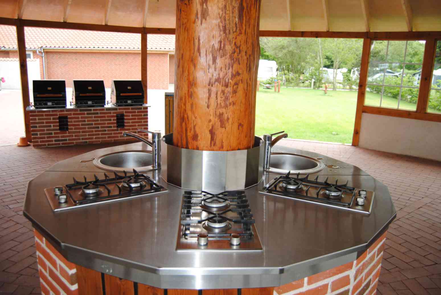 Além disso, uma área para churrasco muito bacana, numa área coberta, com varias mesas, pias, fogões e churrasqueiras.