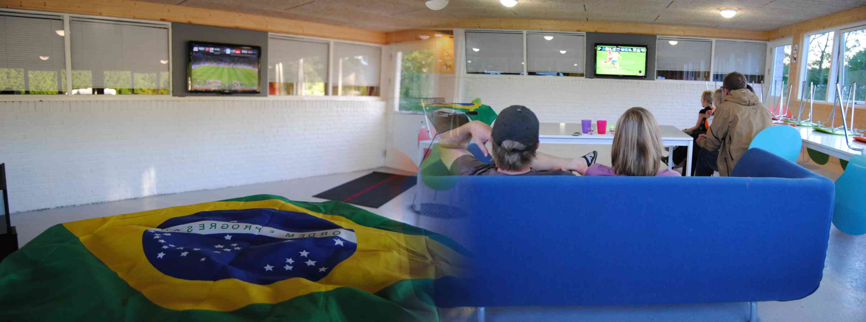 E chegou o dia do jogo do Brasil. Eu, Ana, Tapa, um casal de alemães, um casal de holandeses e uma família de italianos. Essa era a arquibancada no camping naquele dia. Não pude xingar tudo o que eu gostaria porque as crianças italianas entendiam meus palavrões.