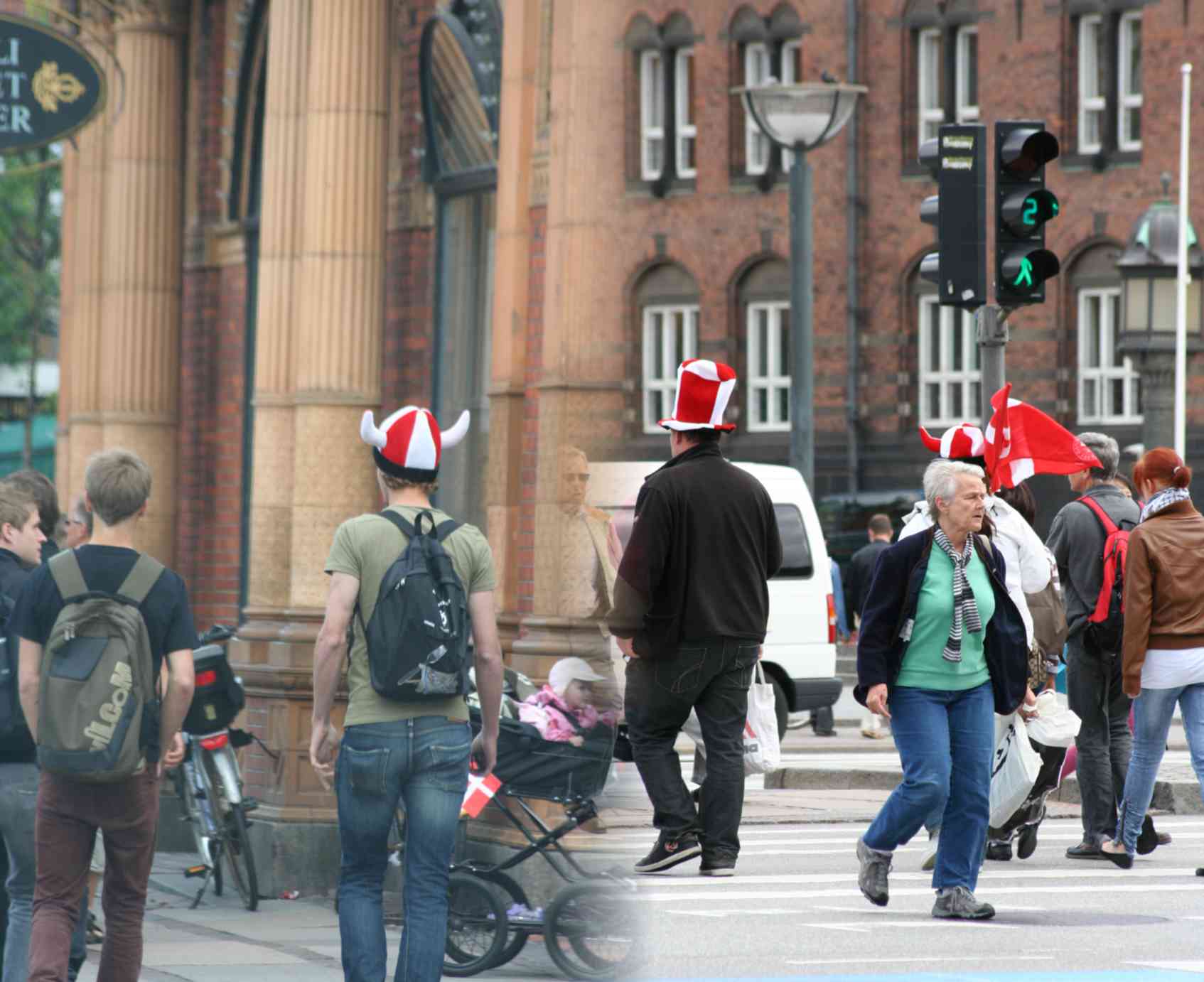 Era dia de jogo: Dianamarca x Holanda. A galera da cidade estava animada e fantasiada pro jogo.