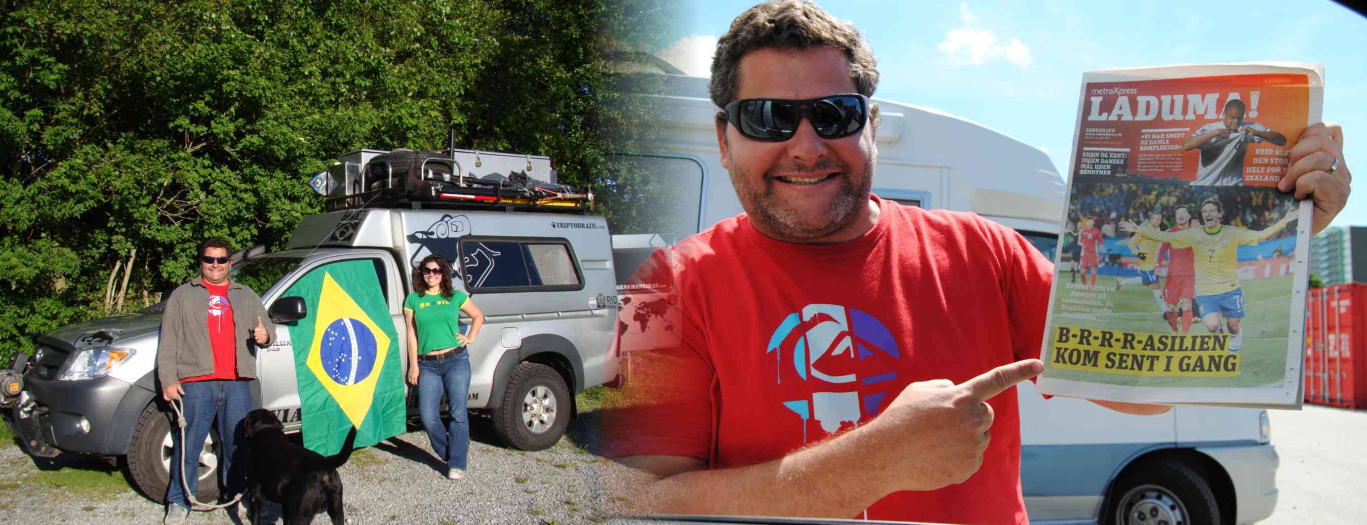 Os gringos piram quando vêem um carro do Brasil. Ainda mais na época da Copa, onde o Brasil é o xerife da situação. Tem bandeira do Brasil nos bares da Europa inteira.