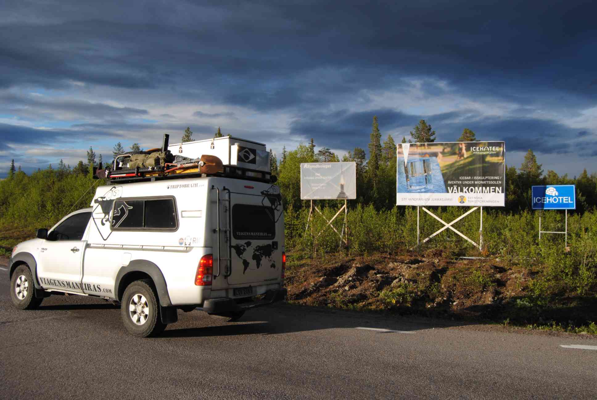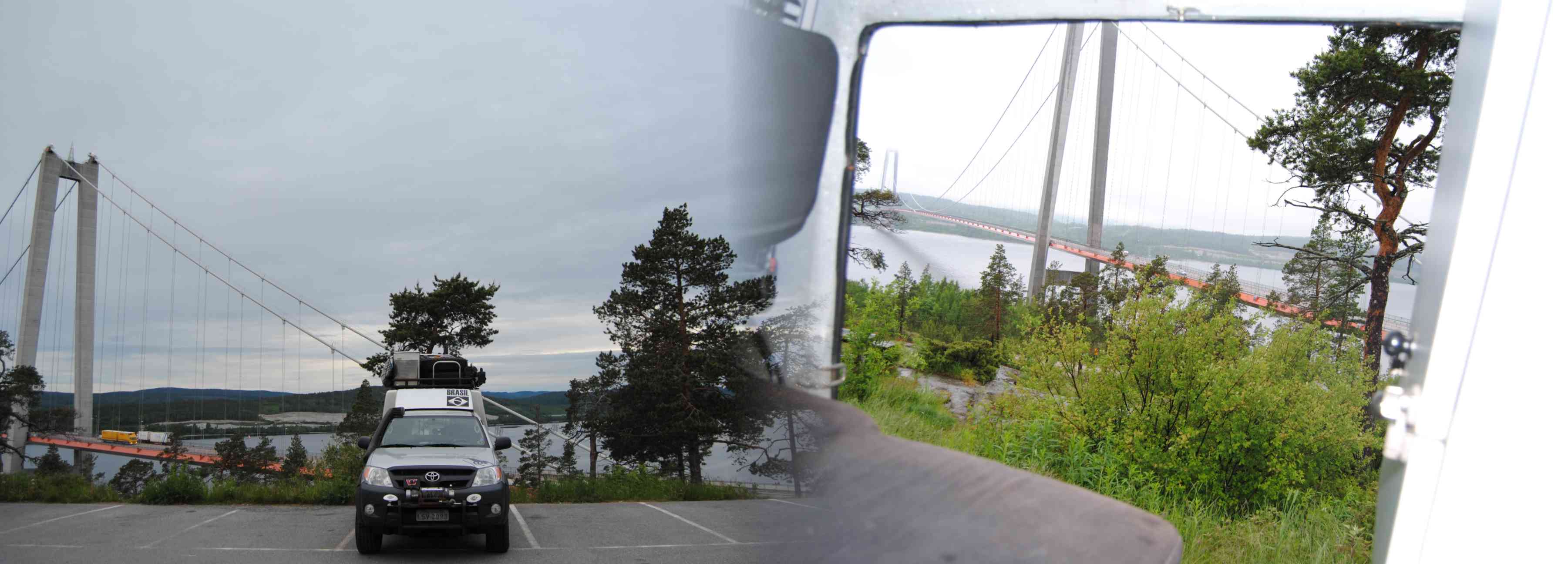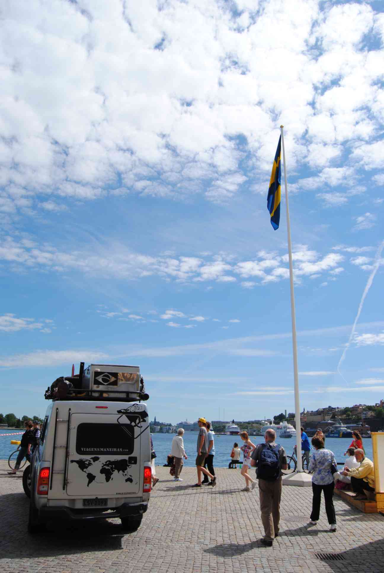 Numa destas paradas conhecemos o simpático casal sueco Harald e Laila Vinskar. Eles já foram ao Rio e a Salvador e ela estava com um boné de Copacabana! Casal bacana e engraçado. Herald me mostrou detalhes importantes no mapa da Suécia e recomendou que fossemos conhecer as Ilhas Lofoten na Noruega. Depois fui assistir os dois dançando, dentro de seu motorhome, a música Copacabana cantada em sueco por um artista chamado Lasse Stefanz. Duas figuraças.