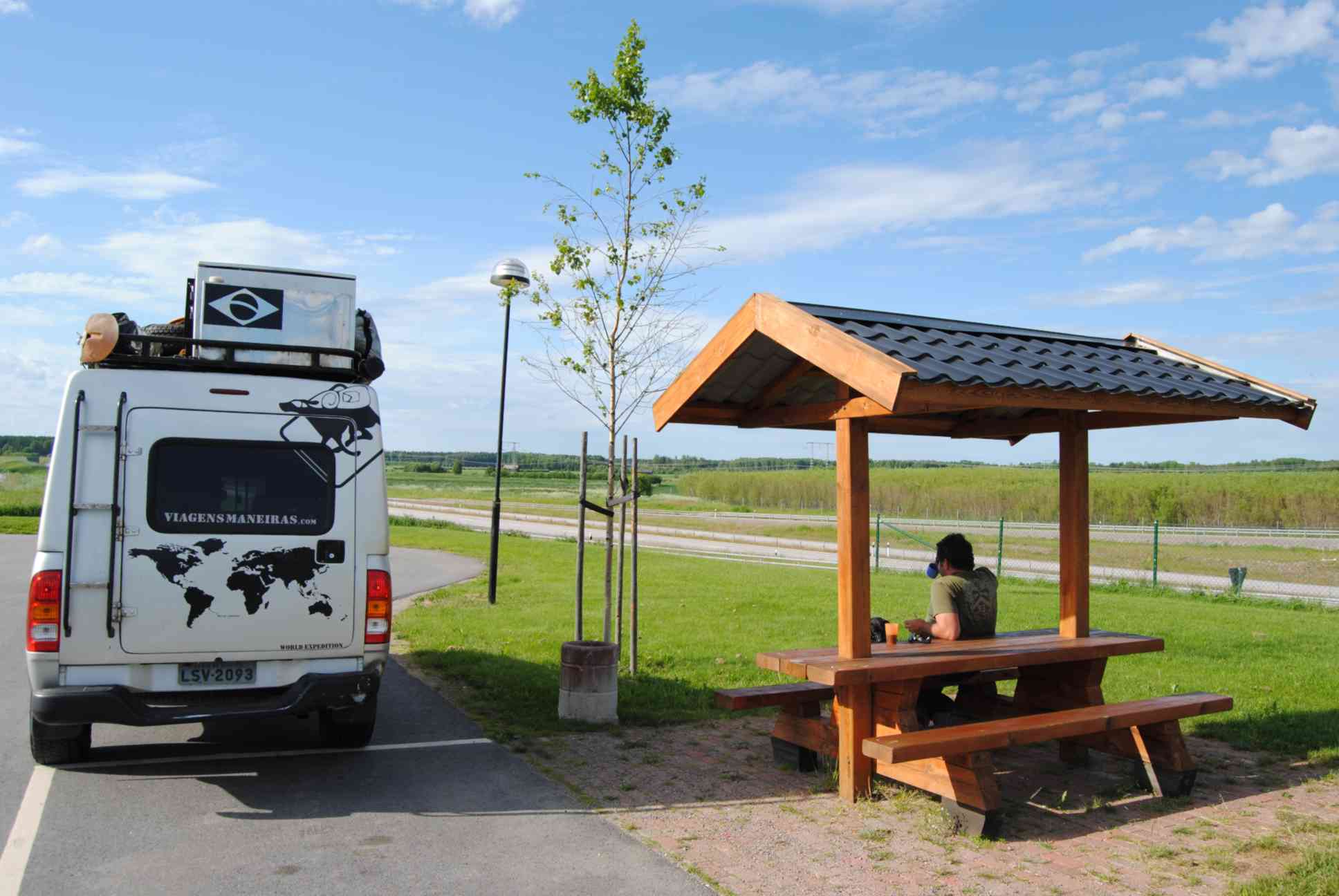 Suécia é um pais tranqüilo, seguro e com baixa densidade demográfica. Trocando em miúdos, na Escandinávia não tem assaltante, por isso dormimos de graça, tranquilamente, nas áreas de descanso.
