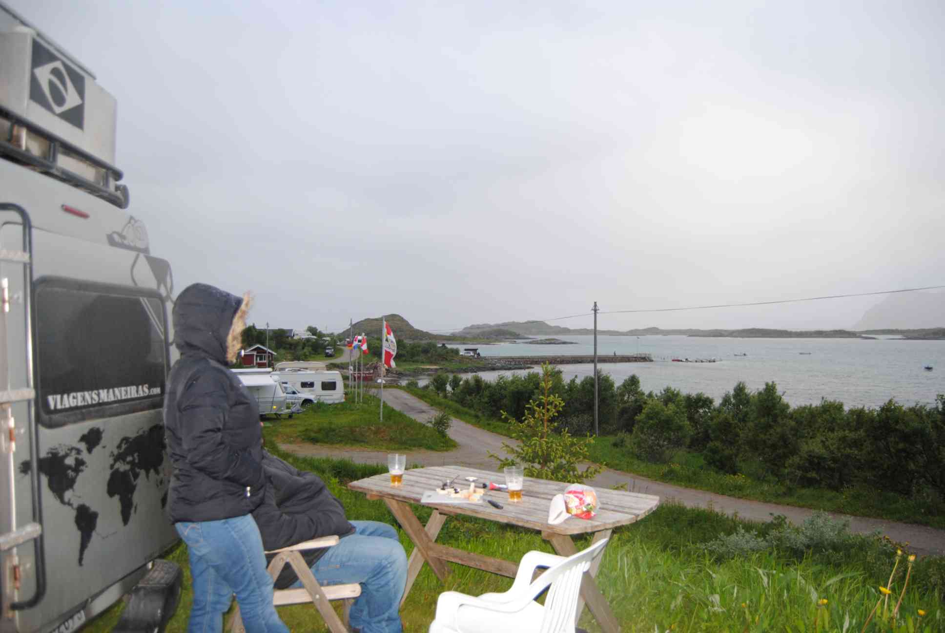 Com o problema da nossa geladeira, está impossível gelar nossas cervas ali, portanto o jeito é improvisar. E em Lofoten, foi perfeito para isso. Pegamos as nossas lindas latinhas e as colocamos para gelarem do lado de fora do carro, soltas no chão. Estava tão frio que em menos de meia hora já estavam boas para tomar. Dá-lhe improviso e viva o frio congelante novamente em nosso caminho!!!
