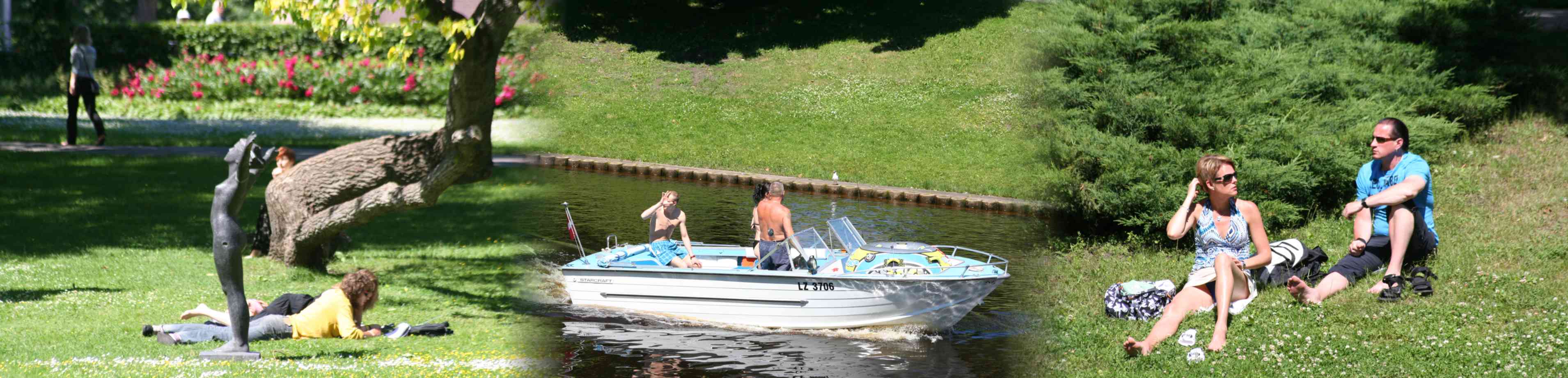 Para refrescar a população, existe um grande parque gramado com um rio bem bonito que cruza todo ele.
