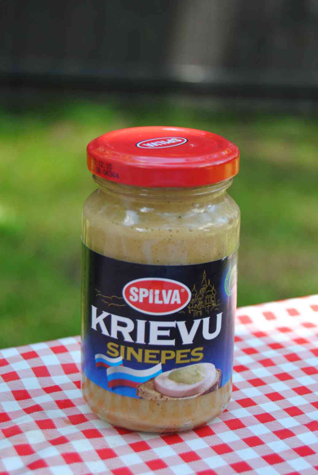 A mostarda Krievu Sinepes, levanta a moral de qualquer um. O sabor é muito forte e dizem por lá que é igual às mostardas russas. Achamos o gosto parecido ao de raiz forte. Combina muito bem com carnes.