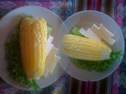 O Choclo, ou milho, é tão famoso por aqui quanto a batata, devido a sua fartura e variedade. Ele também é servido como entrada e/ou aperitivo. Pode vir tostado ou cozido e servido com fatias de queijo de cabra. Diferente!