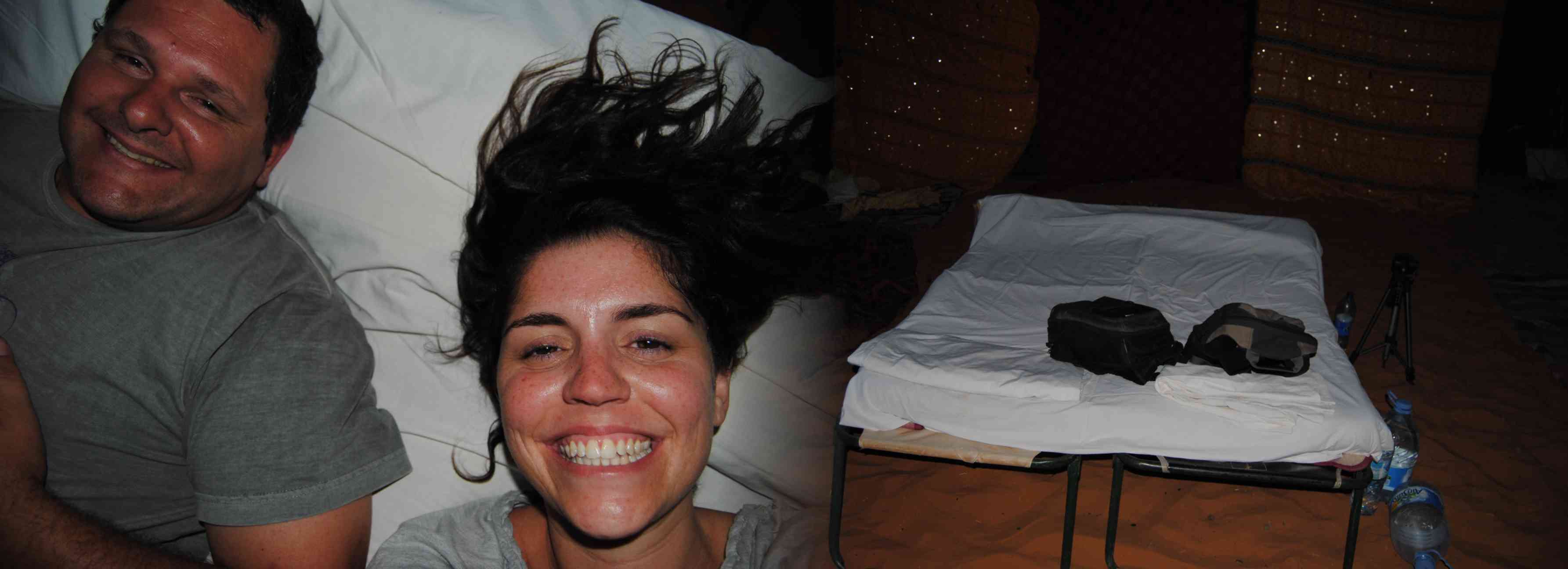 Acordamos nos pés de uma duna de uns 60 metros e o único luxo era um espelho para as mulheres se pentearem.