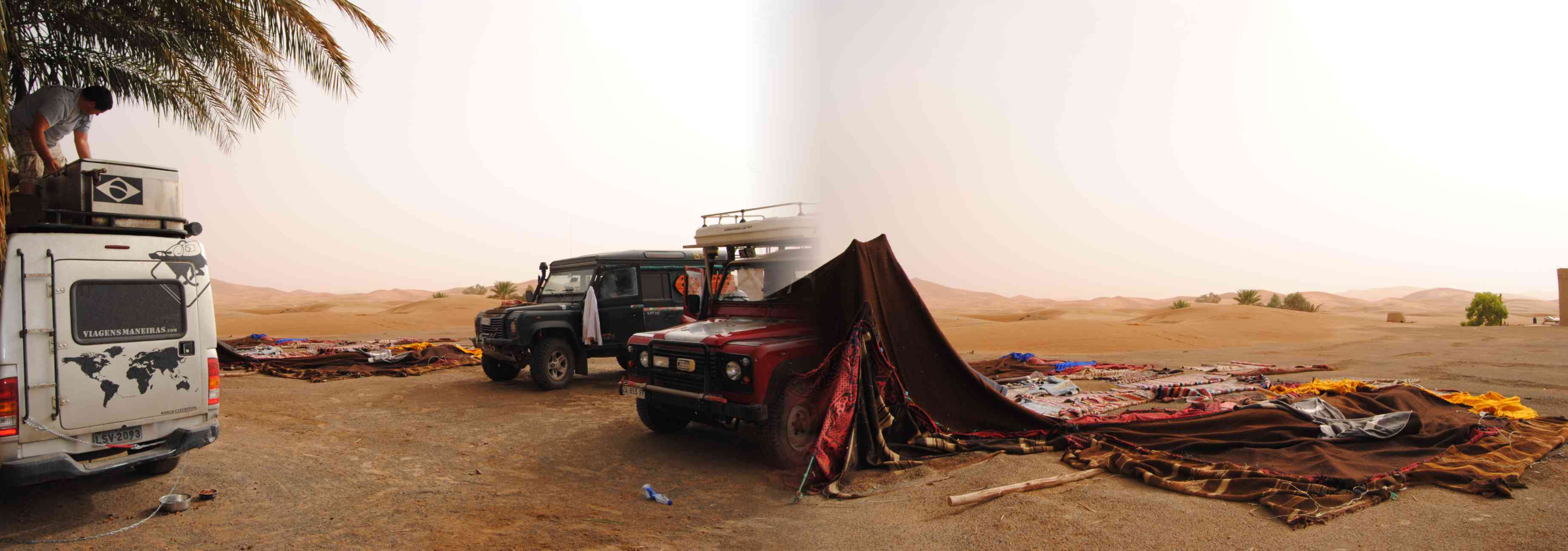 No camping de Fes chegou um comboio italiano com seis Land Rovers. Na mesma noite já estavamos na mesma mesa com um mapa aberto conversando. Os caras se uniram através do site italiano www.africaland.it e estavam viajando juntos por todo o Marrocos. Liderados por Giba “ Il Vagabondo”, um cara com mais de trinta anos de viagens pela África e um livro de lindas fotos de todos os cantos desse incrível continente. Fomos convidados para viajar com eles e claro que topamos! Encontraríamos-nos na cidade de Midelt no dia seguinte.