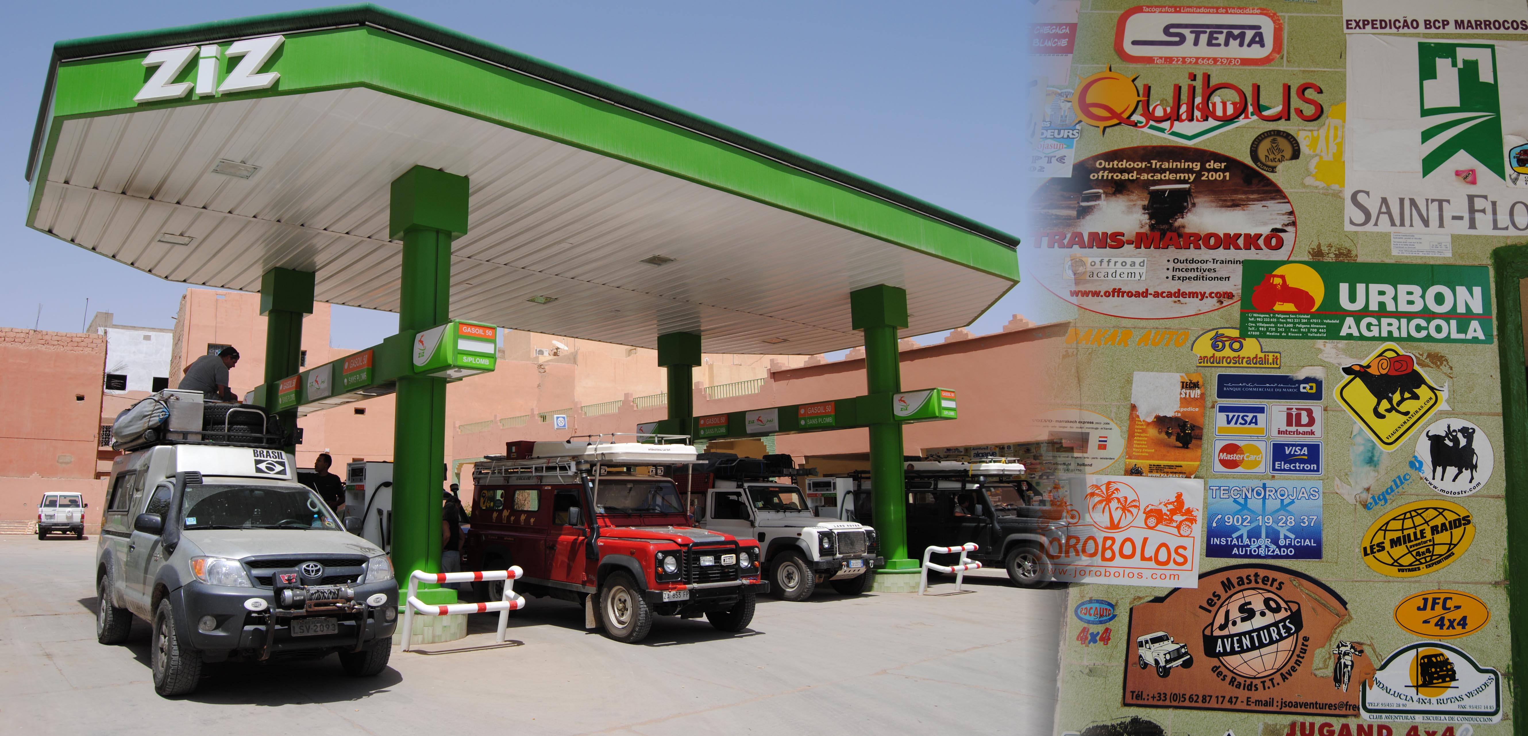 Fizemos nossa última parada para abastecer todos os tanques possíveis e deixamos nosso adesivo lá, do lado de muitas outras expedições que passaram pelo Saara.