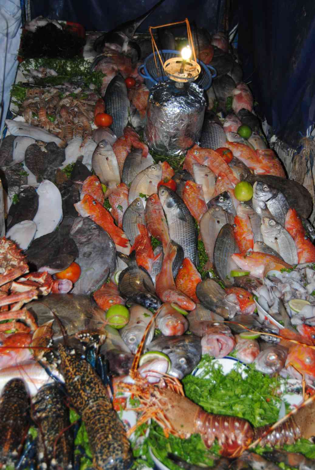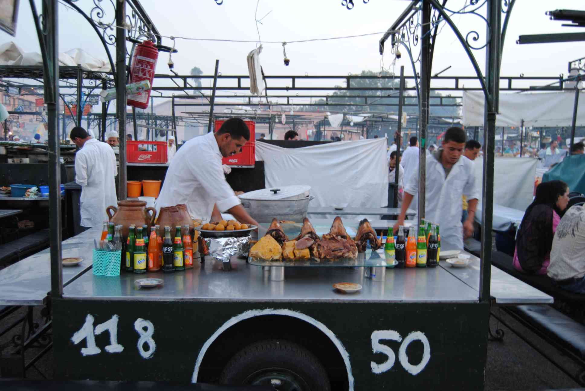 O grande lance no Marrocos é negociar... sempre! Nestes restaurantes você escolhe o que comer...