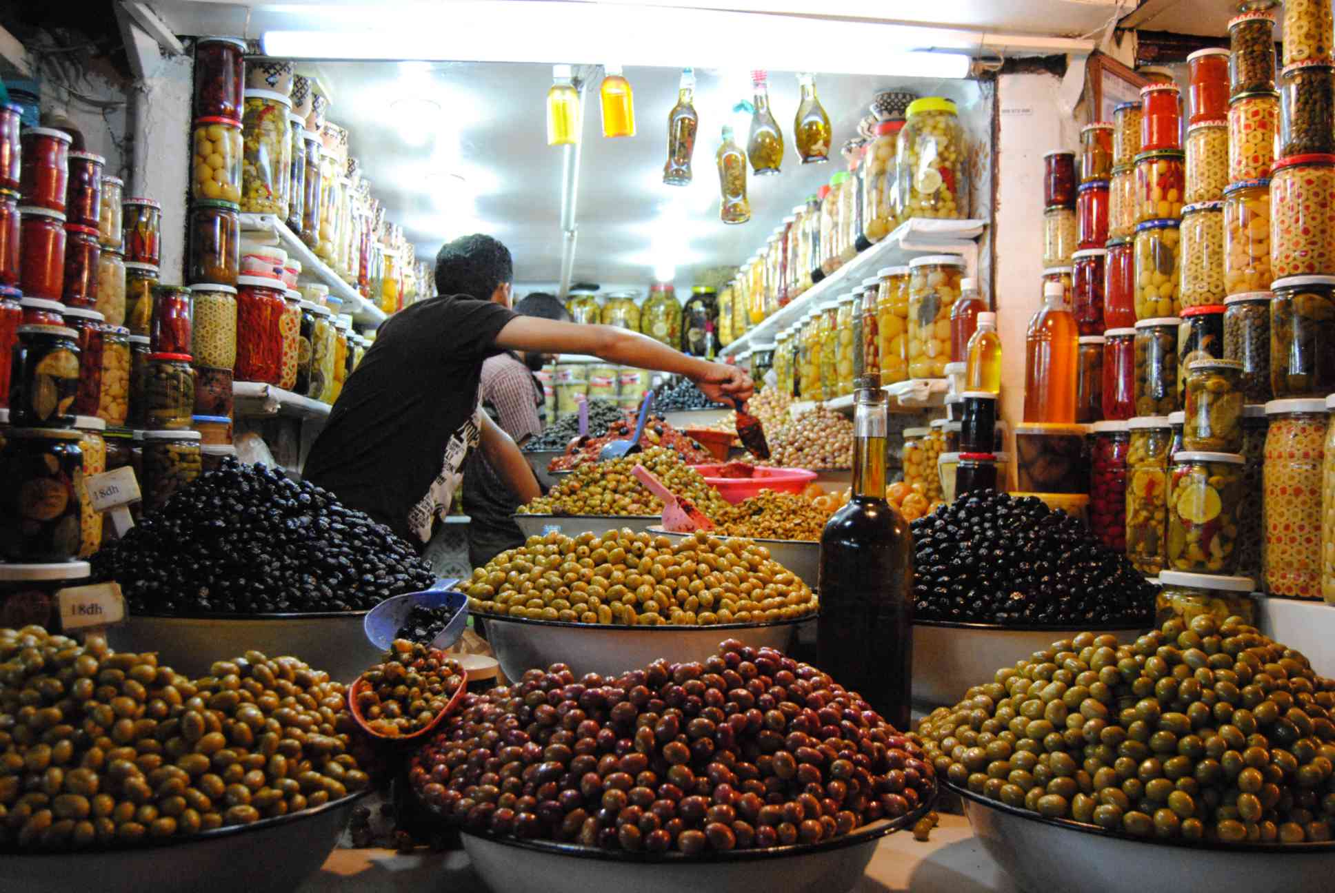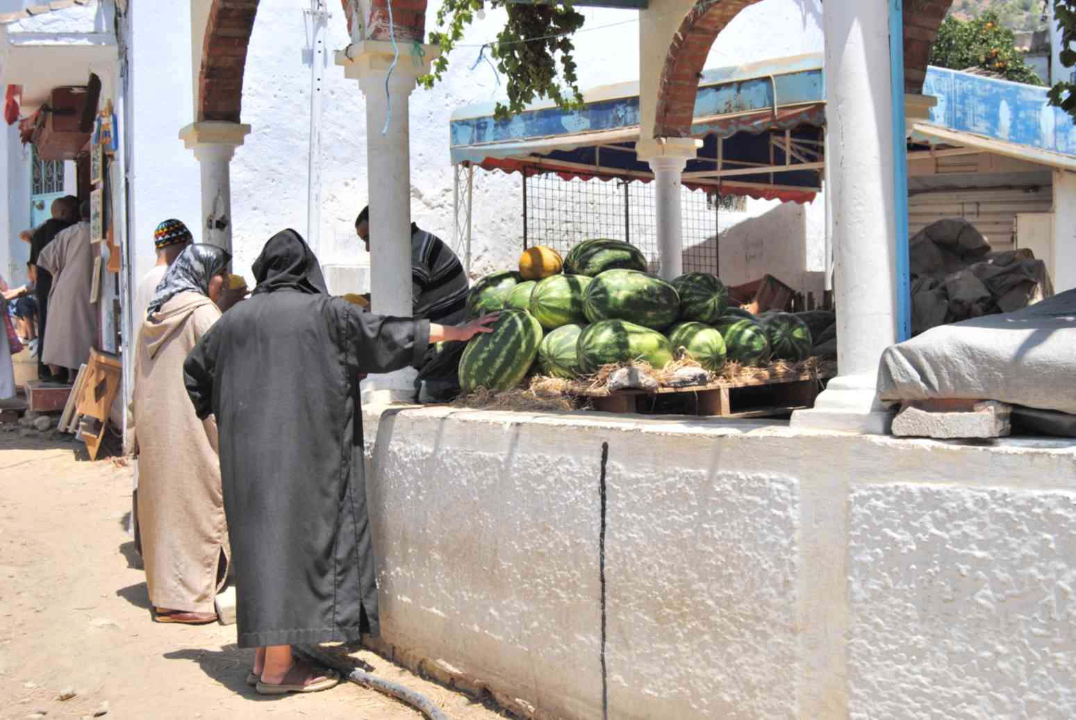 ... onde o dono insistiu para que comprássemos algo, pois daria sorte ao seu negócio. Mas... saímos de lá sem nada. Marroquinos comem muitas frutas...