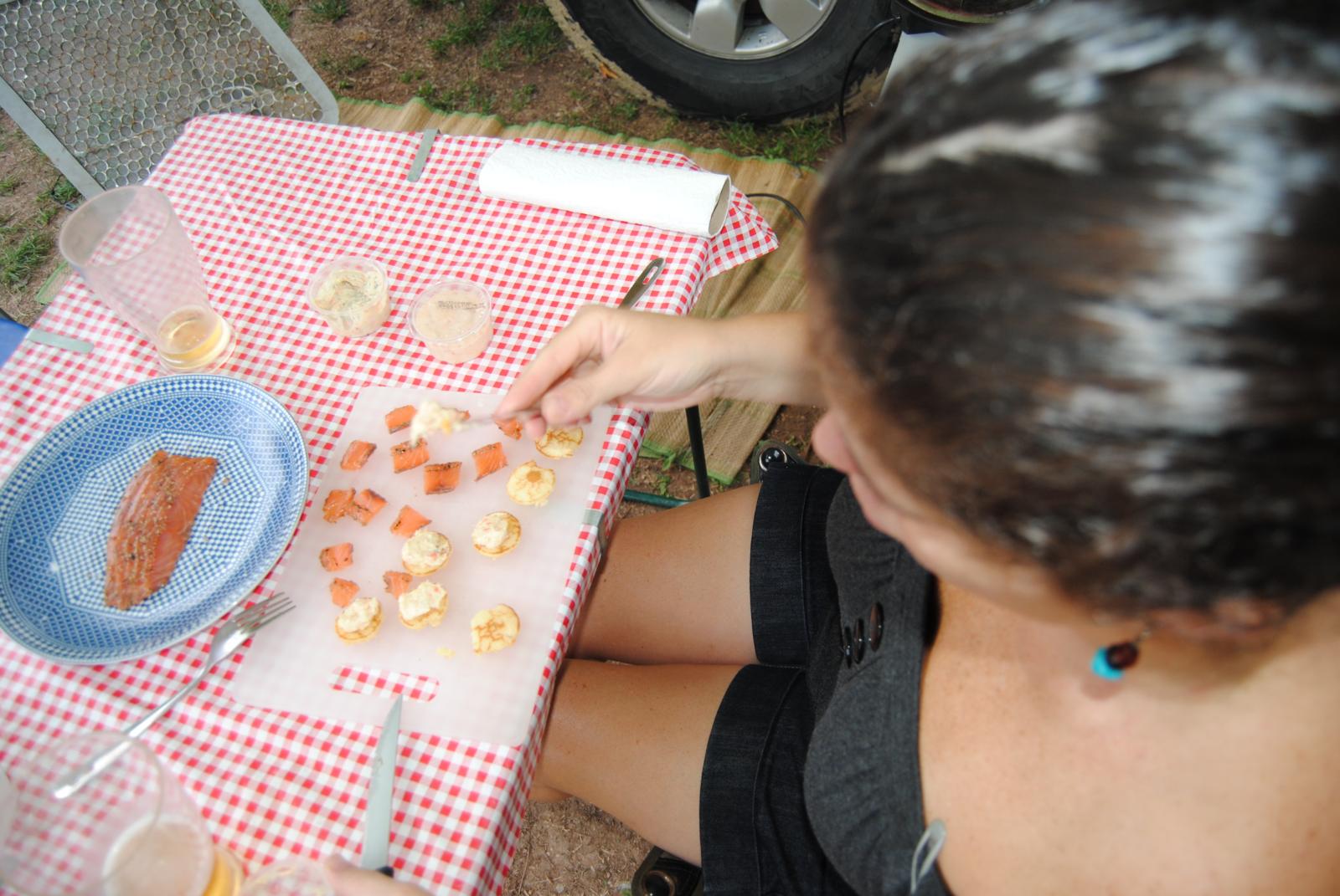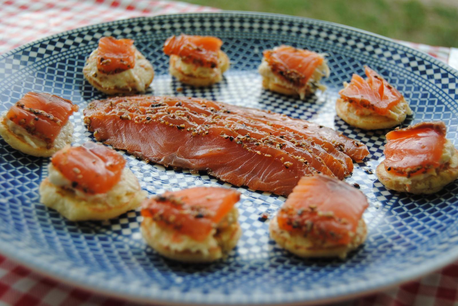 Um certo dia, fiz uns canapés recheados com tirinhas de salmão com pimenta, muito consumido por lá...
