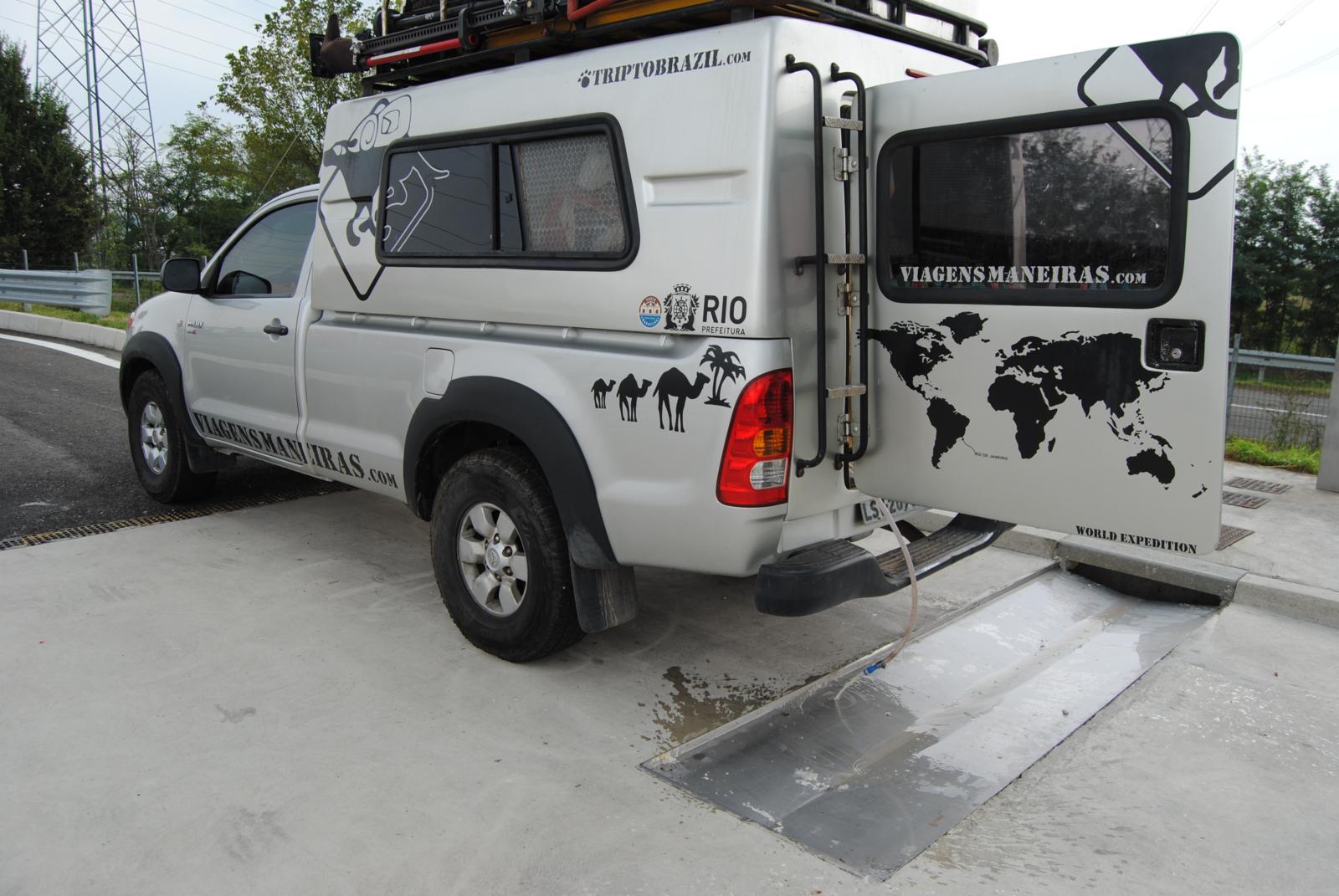 Assim, como na maioria dos postos europeus, existe um lugar dedicado para se jogar a água suja que fica no depósito dos motor homes.