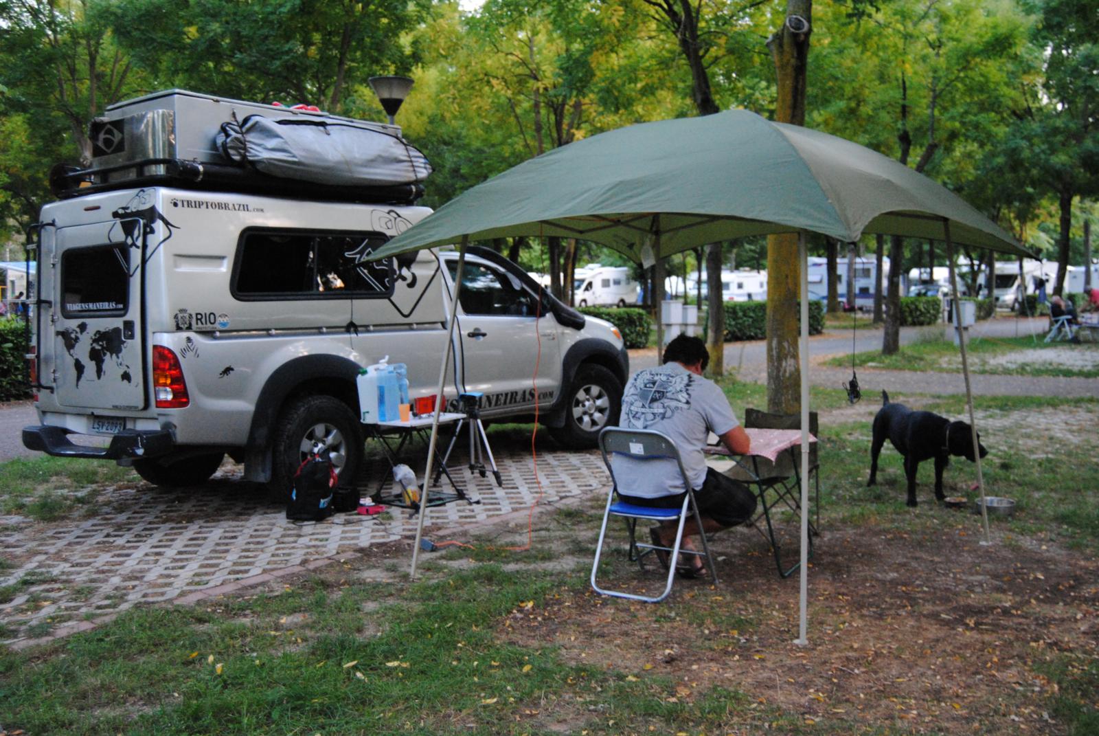 Largamos o Farofamóvel no camping... O trânsito em Milão é complicado, e vaga disponível simplesmente não existe. Dica da Francesca, italiana que vive em Milão, cunhada do Roberto, que conhecemos no Marrocos.
