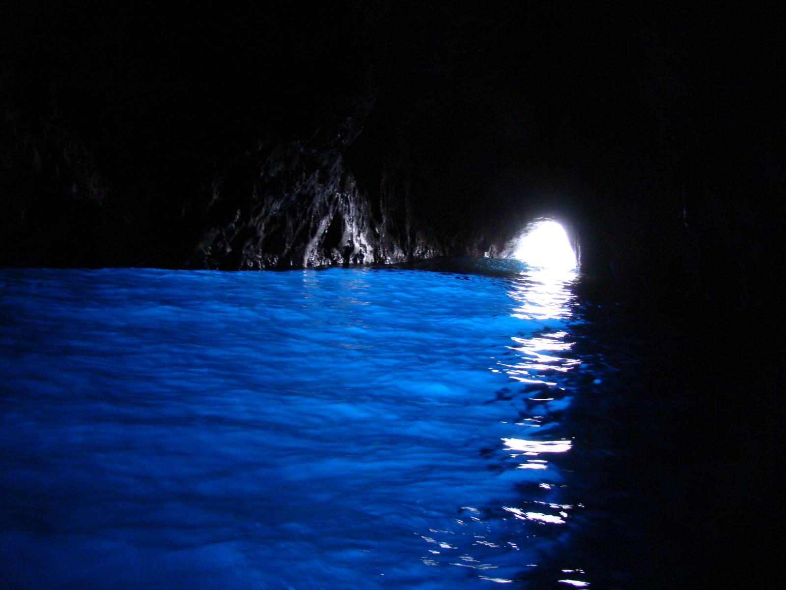 Nossa parada foi a "Gruta Azul'. Uma gruta escura, incrível, com água azul turquesa fosforescente.