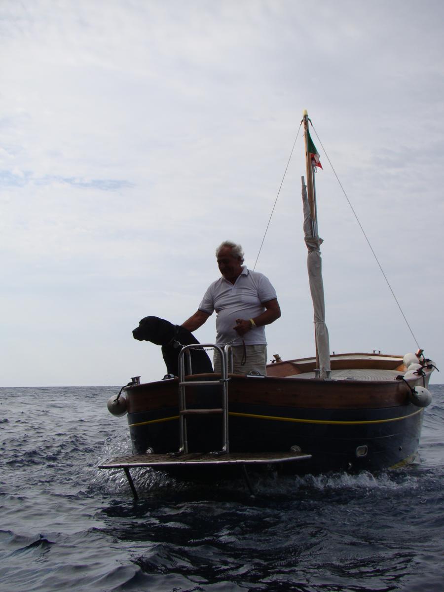 Pegamos uma espécie de traineira italiana: Eu, minha olhuda, fedorento, e um capitão muito doido chamado Pipo.