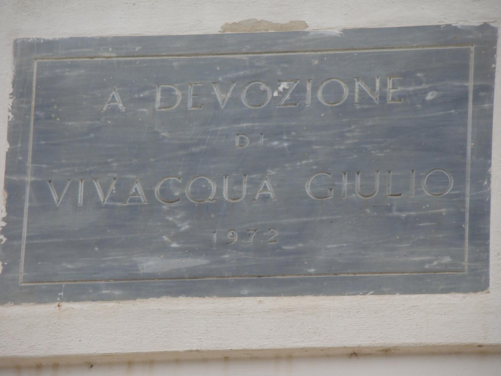 ... Não pude acreditar... Na plaquinha, na testa da igreja: "Em devoção à Giulio Vivacqua".
