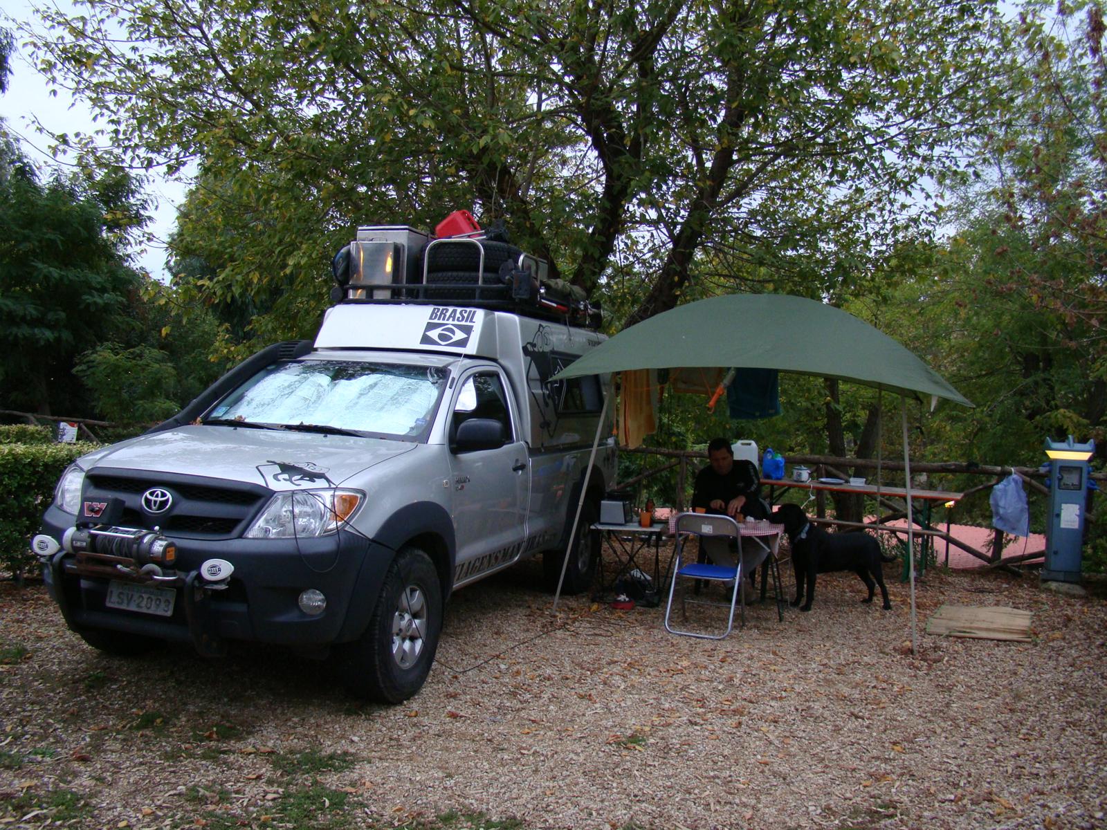 No camping, nossos vizinhos de acampamento, os ingleses Dave e Shar Turner, estavam voltando do Oriente Médio e nos deram dicas valiosíssimas, e é claro que que vamos usá-las.