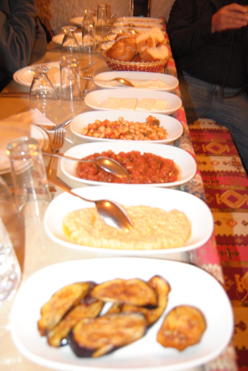 Viajar pela Turquia foi um verdadeiro deleite. Não só por suas delícias gastronômicas, mas por toda a beleza do país, que não é só natural. Sua cultura, sua arquitetura, o avanço no tempo em relaçao à sua religiao mandatória, predominantemente muçulmana, a hospitalidade do povo, enfim, não poderíamos ter tido uma visita melhor por lá. Depois de passarmos pelo Marrocos, onde as mulheres são tratadas como meras arrumadoras da casa, da limpeza do lar, e procriadoras da famillia, viajar pela Turquia, e ver que isso, por lá, ficou no passado foi realmente encantador. Em todos os lugares, pude transitar livremente, sem me sentir mal, usando a velha e boa calça jeans, tenis e camiseta. No Marrocos, não era assim. Além disso, os homens turcos, pelo menos os que conhecemos, tratam as mulheres, praticamente, de igual para igual. E poder ver isso tudo de perto tem sido realmente enriquecedor, em todos os sentidos. Indo ao que interessa, falemos sobre a fantástica gastronomia turca. Eu já sabia que a gastronomia da região iria nos agradar bastante, mas não tanto como nos agradou. Fazendo novamente um diferencial entre os dois paises muçulmanos que conhecemos até o momento, Marrocos e Turquia, este último dá de mil a zero em relaçao à limpeza dos alimentos, na conservação dos mesmos, em sua preparação e na higiene dos cozinheiros, garçons, vendedores de carroçinhas etc. Após ter passado por maus bocados no Marrocos por causa da higiene alimentícia, que por lá é muito precária, fiquei muito mais atenta ao que iríamos comer e onde. Mas logo em nossas primeiras experiências vi que era tudo tão diferente que pude relaxar e curtir. Como de praxe, experimentamos pratos tradicionais de cada lugar. Como já tinha uma certa referência sobre a gastronomia local, pois sempre comi em casa pratos típicos do pais, como o hummus...