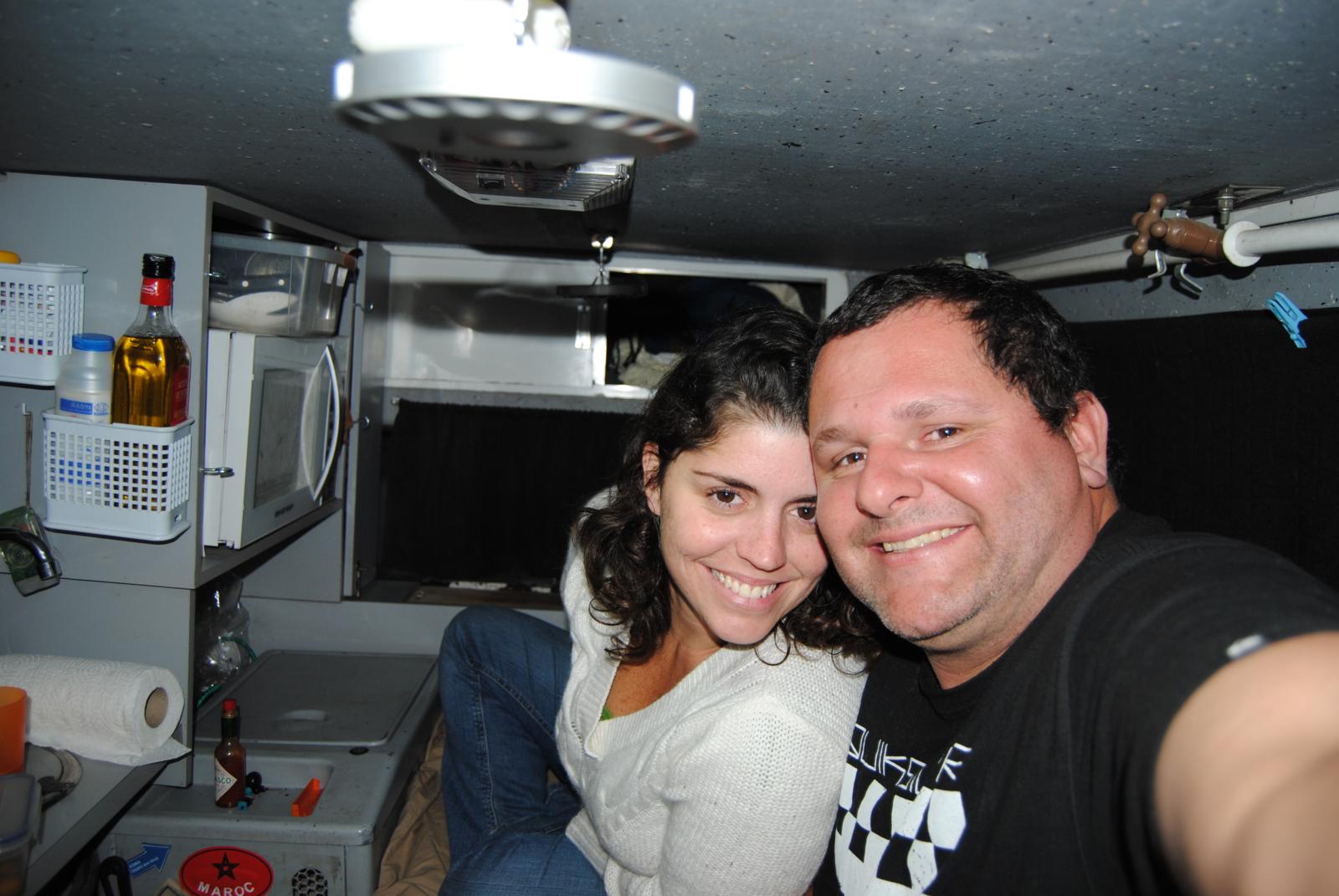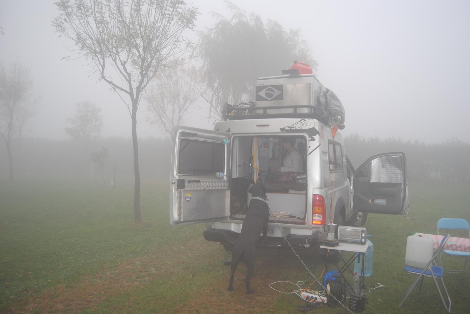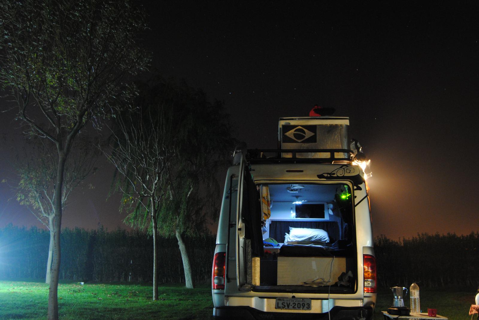 Acampamos no estacionamento de um hotelzinho.