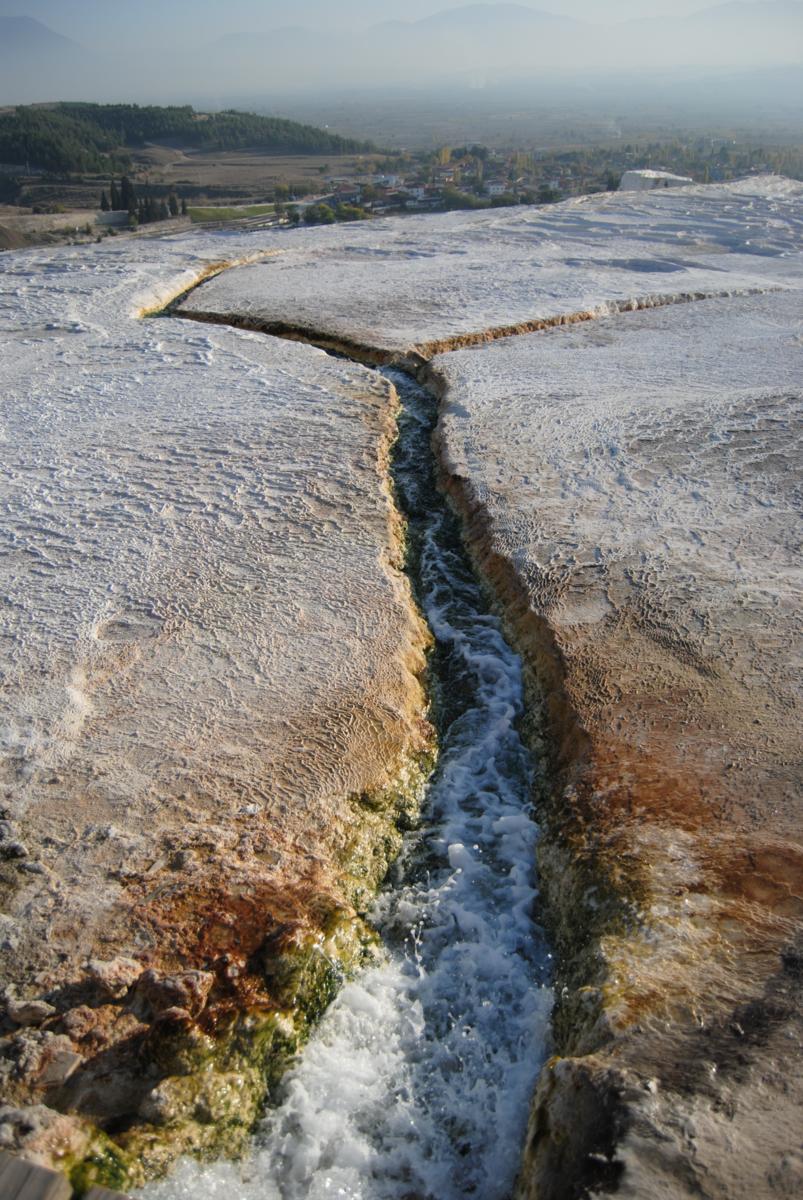 A água cristalina e termal corre por valas...