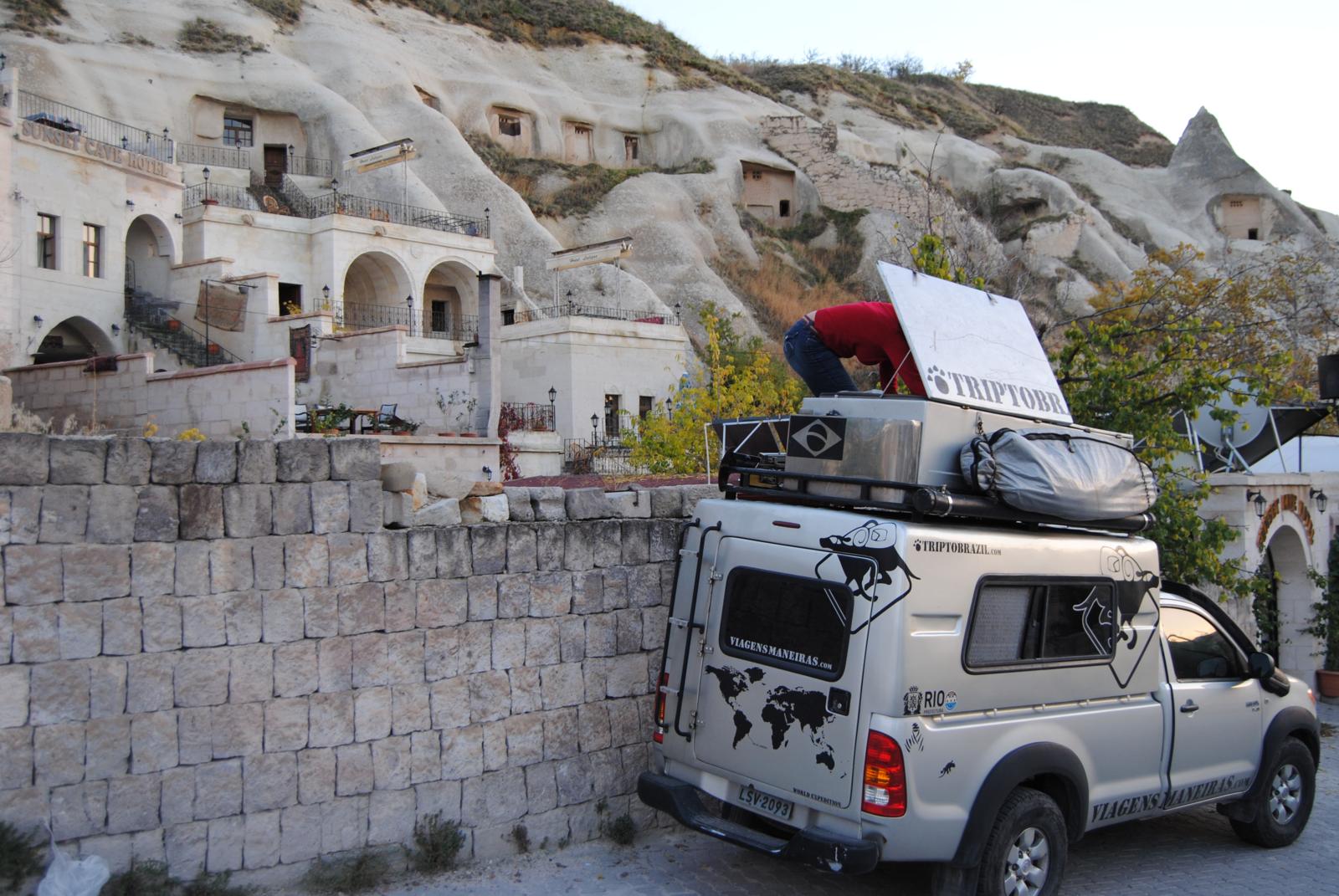 Por um preço quase igual ao do camping ficamos em um hotelzinho escavado na montanha.
