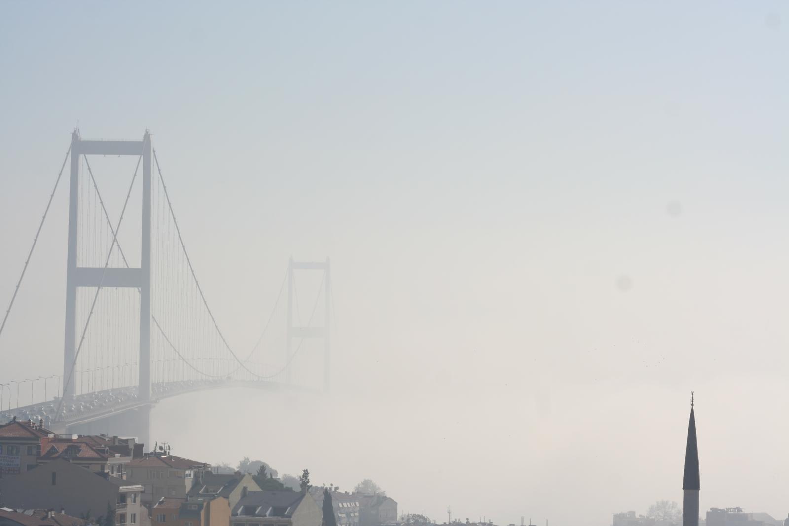 Lá no final dessa ponte pênsil, atrás da neblina, está um novo continente: a Ásia!