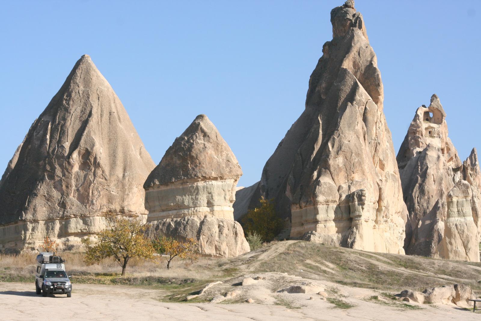 As rochas vulcânicas ficaram com o formato de cogumelo graças à erosão. São cogumelos enormes!