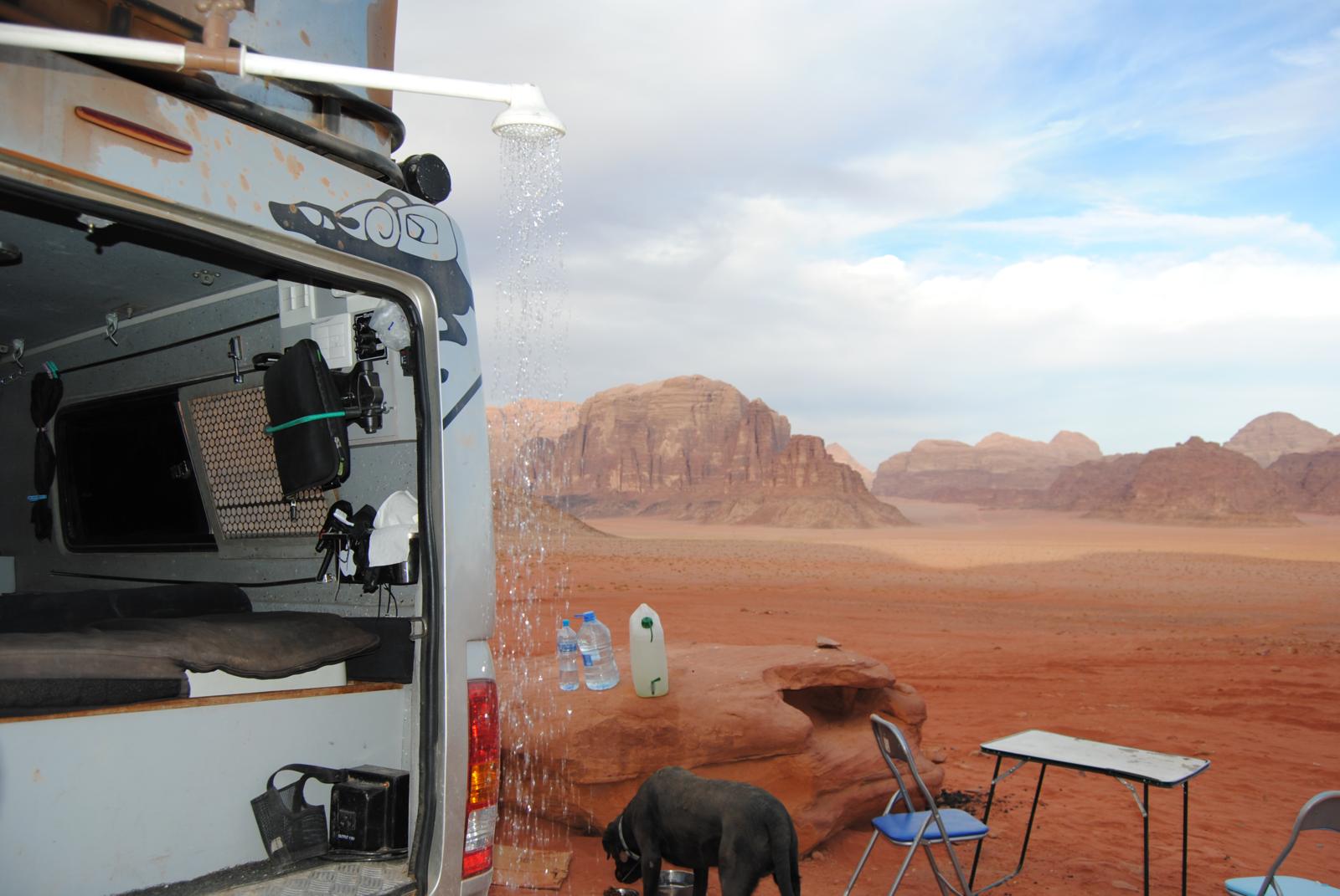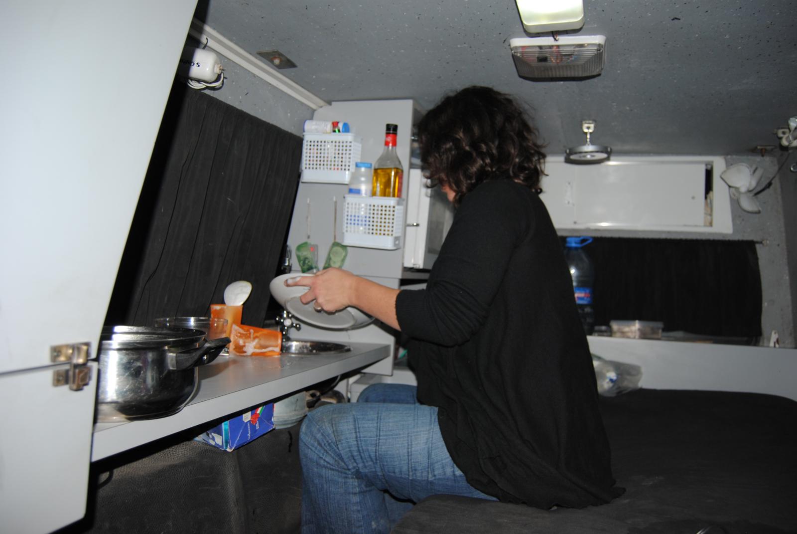 É a cozinha do Farofamovel mandando ver! A pia está sendo usada como nunca, pois como na maioria dos campings do Oriente Médio nao têm cozinhas, ou área para lavar louça, incluindo os acampamentos no deserto, hehehe... Ela está mostrando a que veio.