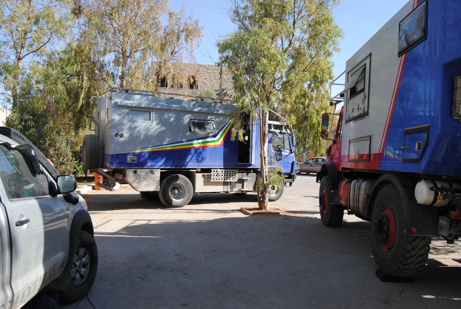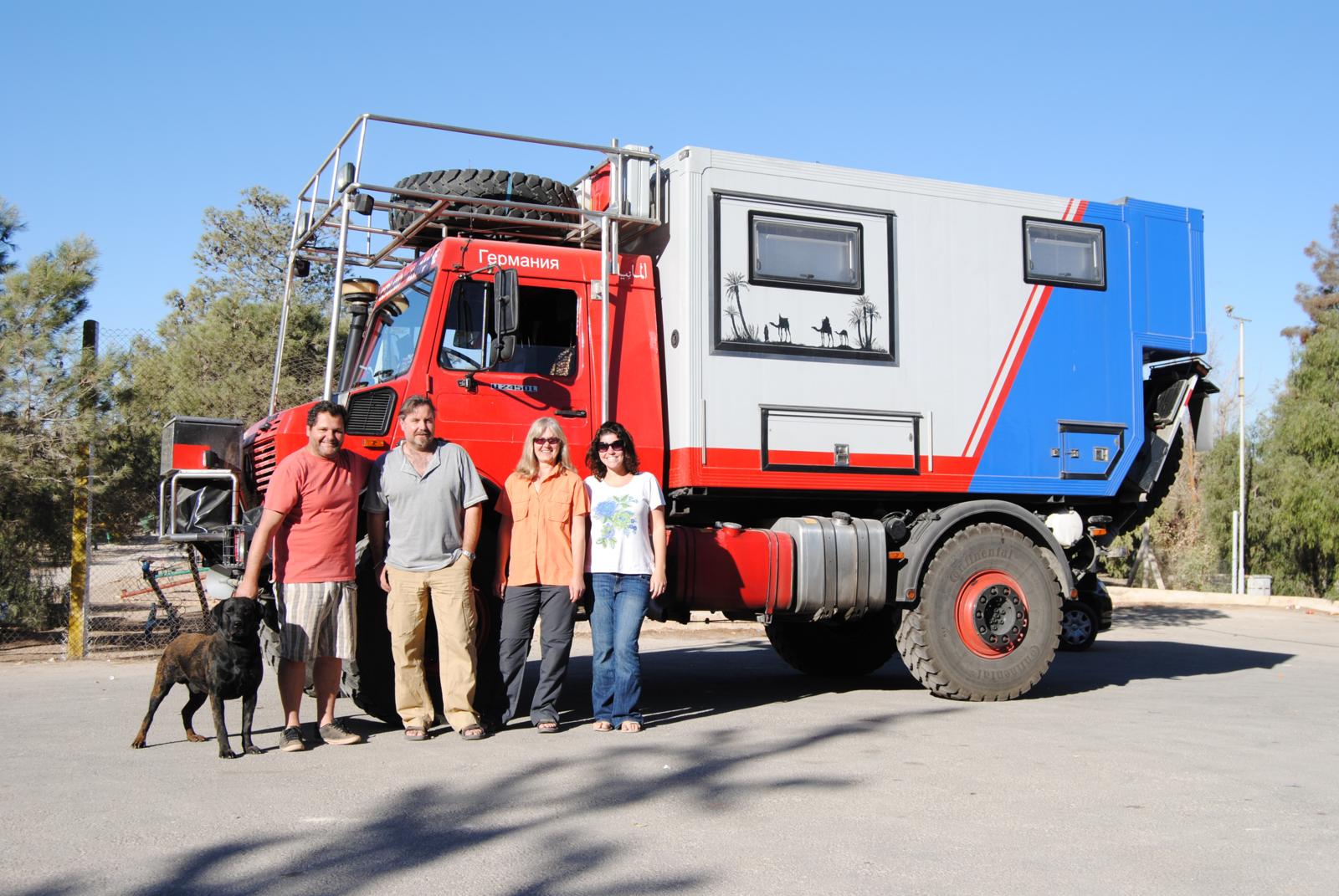 Os alemães Klaus e Sonja, em seu formidável Unimog, foram os nossos simpáticos vizinhos em boa parte dessa longa espera pelos vistos.