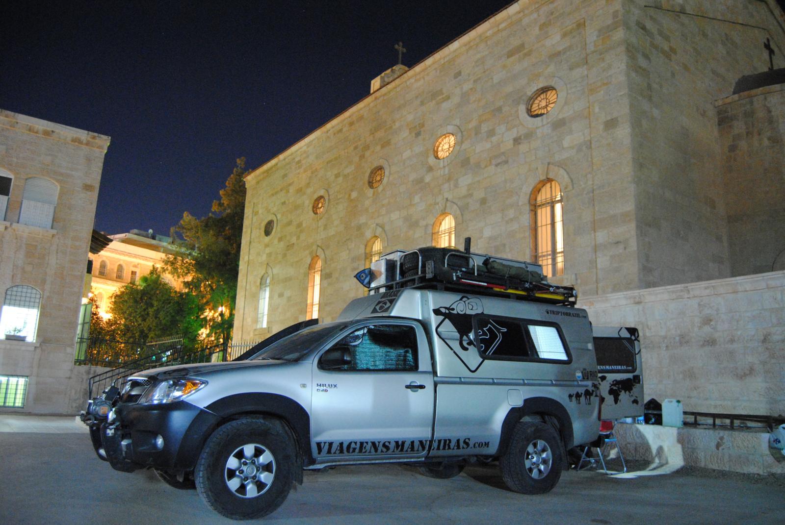 Acampamos nos fundos de uma igreja cristã grego ortodoxa.