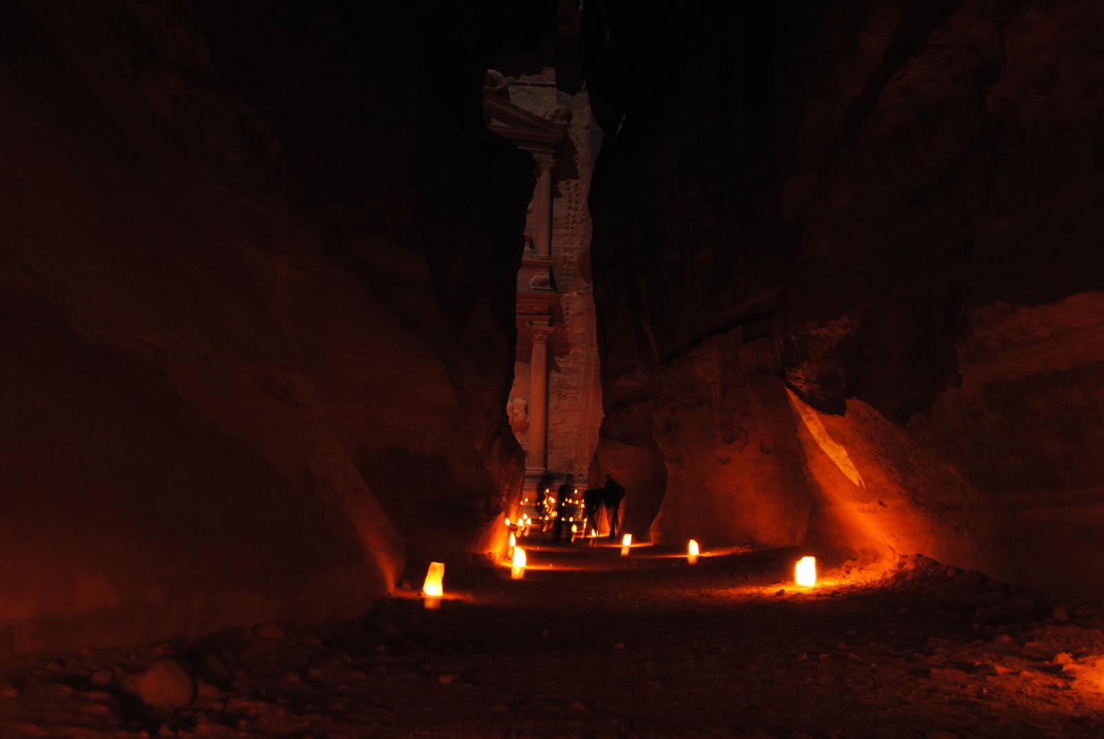 E à noite, Petra consegue ser ainda mais fantástica. Um cânion estreito com mais de um quilômetro todo iluminado com centenas de velas...