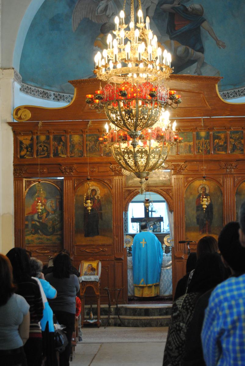 Assistimos o início da missa matinal e, curiosamente, o padre ficou de costas para os presentes o tempo todo que estivemos ali.