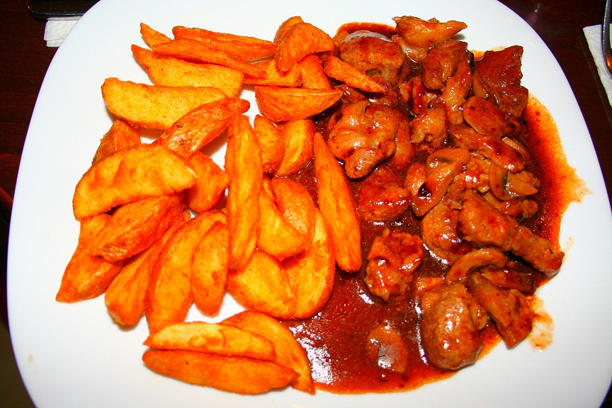 tarefa! Por conta disto, tratei de mergulhar a fundo na gastronomia do país, já que não tive outra saída. Como a agricultura está fortemente ligada a economia do pais, acaba influenciando os pratos à mesa. Legumes são muito fáceis de serem achados e a batata está sempre presente. Não importa a sua forma de apresentação, o importante é estar presente. Comida fast food, como hambúrgueres, são difíceis de encontrar. Mas guloseimas locais tem em toda esquina. Paramos numa lojinha e comemos dois tipos delas. Uma delas em forma de envelope com recheio de azeitonas, queijo e molho de tomate...