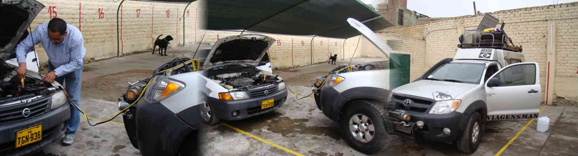 Descolamos um estacionamento tranqüilo que tinha até banheiro limpo e banho. Dormimos dentro do Farofamóvel. A noite foi super tranquila. Na manhã seguinte acordei com o barulho de um carro que não conseguia ligar. Esse problema é comum aqui no Peru. Me senti na obrigação de dar uma força pro cara, e depois de algumas tentativas frustradas com o "Starter"" fizemos uma chupeta e o carro pegou.