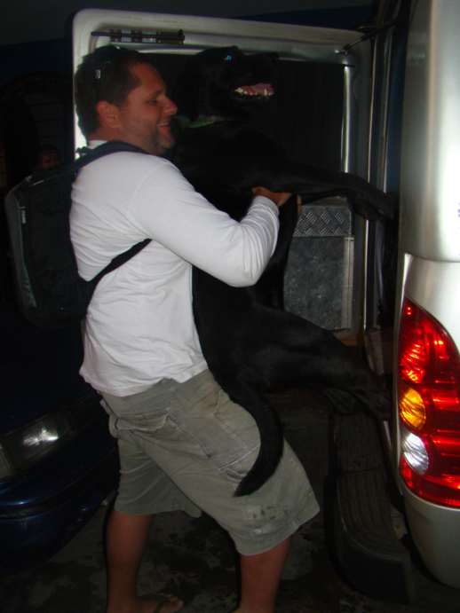 O Tapa agora está se achando o rei da cocada preta e quer cruzar com tudo que se mexe e faz força para não entrar no carro na hora de ir embora.
