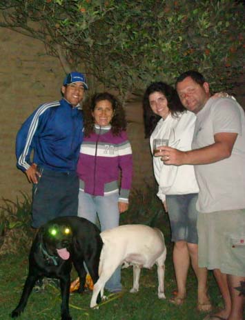 O nome da moça é Chana e o cara se chama Jorge, mas é conhecido na área por Jorgito. A cadela é uma doce labradora amarela chamada Coqueta, que significa exibida. O Tapa bateu o olho na Coqueta e sem delongas partiu pro estupro. Desesperada ela deu um drible a la Garrincha , correu para dentro da casa e entrou embaixo da cama. O Tapa desesperado entrou também e a cama começou a quicar no estilo Poltergaist. Foi engraçado.