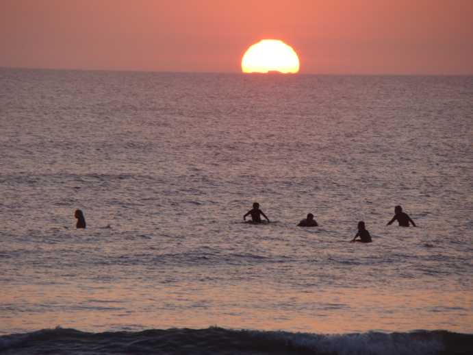 No Oceano Pacifico o sol mergulha no mar no fim de tarde. É bonito demais.