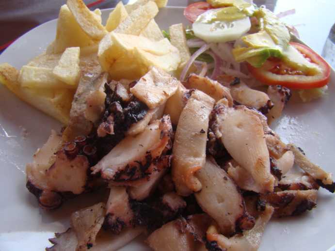 Outra delícia do mar a qual você precisa comer por aqui é o “Pulpo A La Plancha”, polvo feito na chapa, acompanhado por salada e batata frita. É um prato que pode até comer no Brasil, mas experimentá-lo aqui tem um charme a mais.