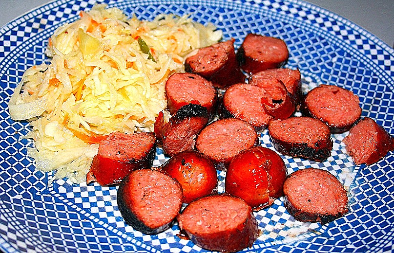 Salada de batata ou chucrute, conserva de repolho, foram os acompanhamentos principais.